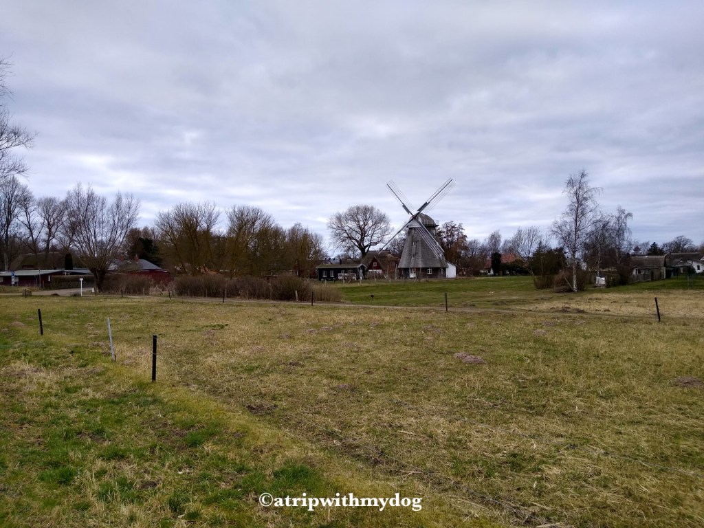 From the harbour, continue along the fields towards the windmill (“Mühle”).
