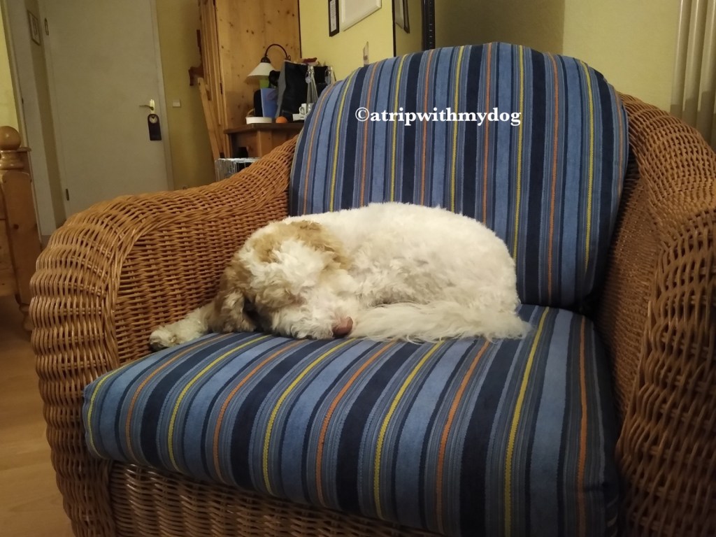 There was also a separate seating area with two very cozy chairs. Of course, my dog claimed one of those chairs as her own as soon as we arrived. As you can tell, she loved it!