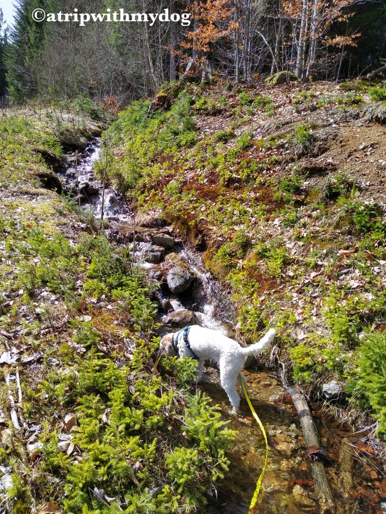 Where we turned, there was a small stream running along the side of the road. Of course my dog took the opportunity to have a drink and get her paws wet.