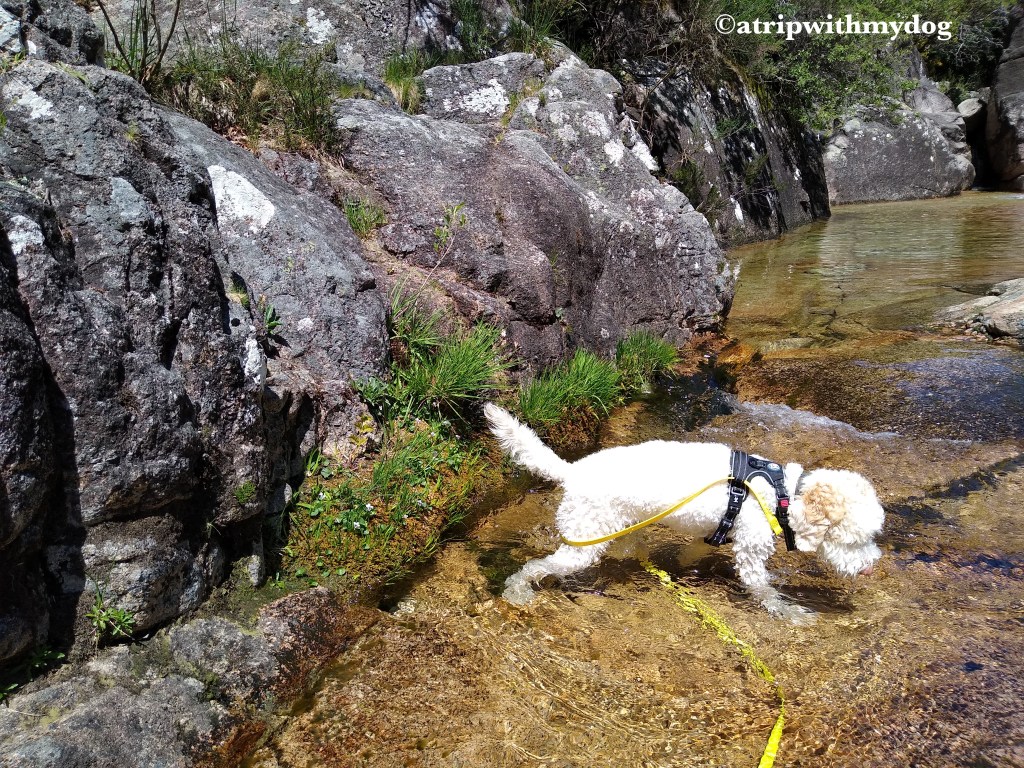 Up next on the tour was the Cascata da Albergaria, another waterfall in the Gerês national park. This one was probably my dog’s favorite part, because it was very inviting to get in and enjoy the shallow water for a bit. She definitely enjoyed her bath in the pond. Of course, be mindful that you are near a waterfall, keep your dog leashed and proceed with caution!