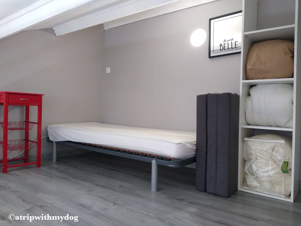 The apartment was very spacious. There is one bedroom where you can close a door, as well as another sleeping area in a loft over the living room. I cannot speak for the upstairs bed, but the mattress in the main bedroom seemed cheap and like it had seen better days, if I’m honest. Since we only stayed one night it was not a problem though.