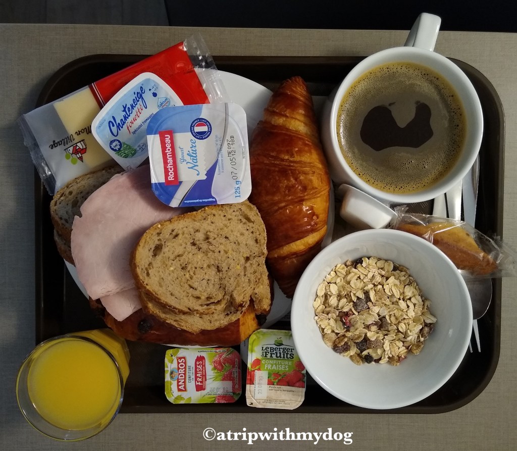 At this hotel, I paid 59 EUR per night. My dog cost an extra 6 EUR, and breakfast was 7.90 EUR.