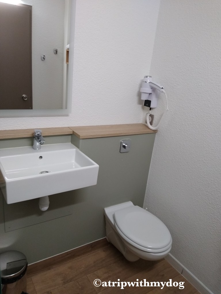 The bathroom was not very large either, but totally fine. A hairdryer was available.