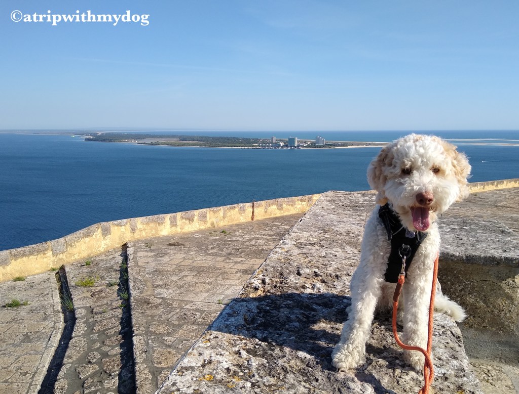 During the uphill walk, you again have some nice views of Troía, and eventually Forte de São Felipe awaits. You can enter the castle with your dog without any problem. The views from the top are really nice. You can see all directions, overlooking the city, the natural park as well as once again Troía.
