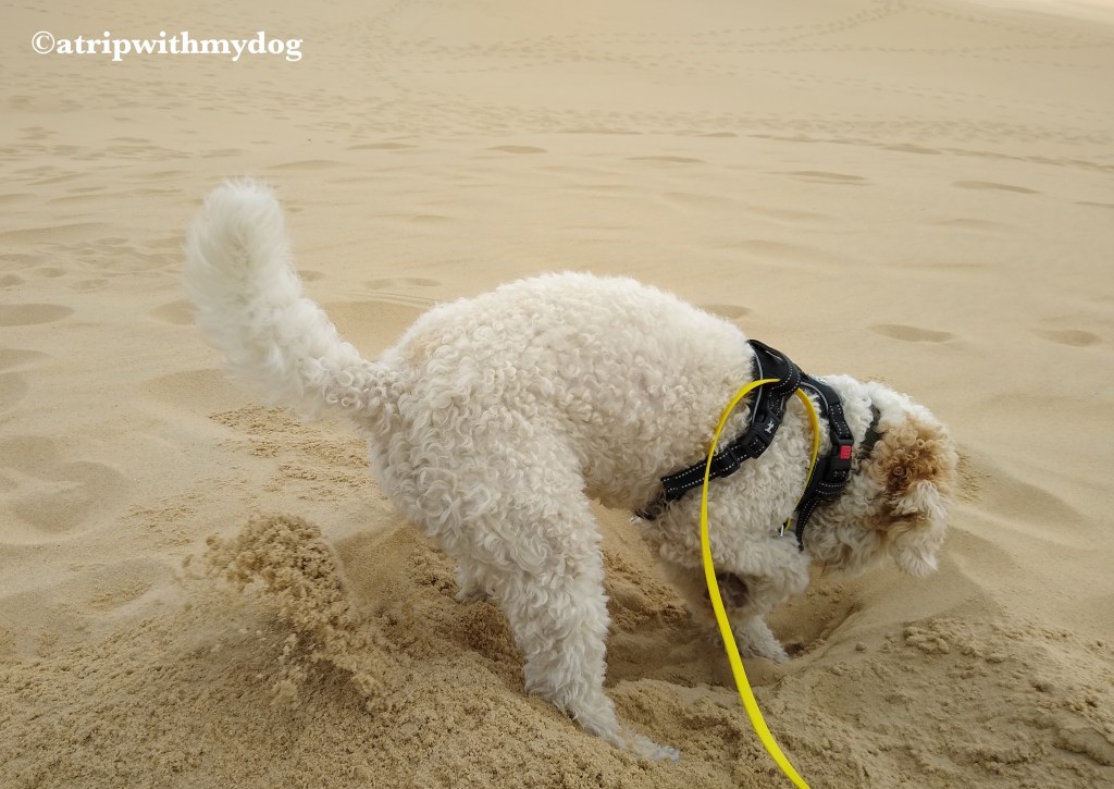 The water next to the dune is very calm, there were barely any waves. My dog is usually a bit hesitant to go into the sea because of the waves, but here she went right in. In fact, she practically pulled me in too.
