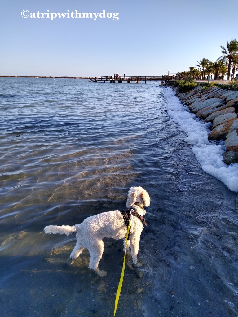 If you walk right instead, you will eventually encounter the famous mud bathing spots. I did not take a mud bath, but my pup certainly had a dip into the sea. There is also a very wide promenade that is perfect for a stroll or even a bike ride.