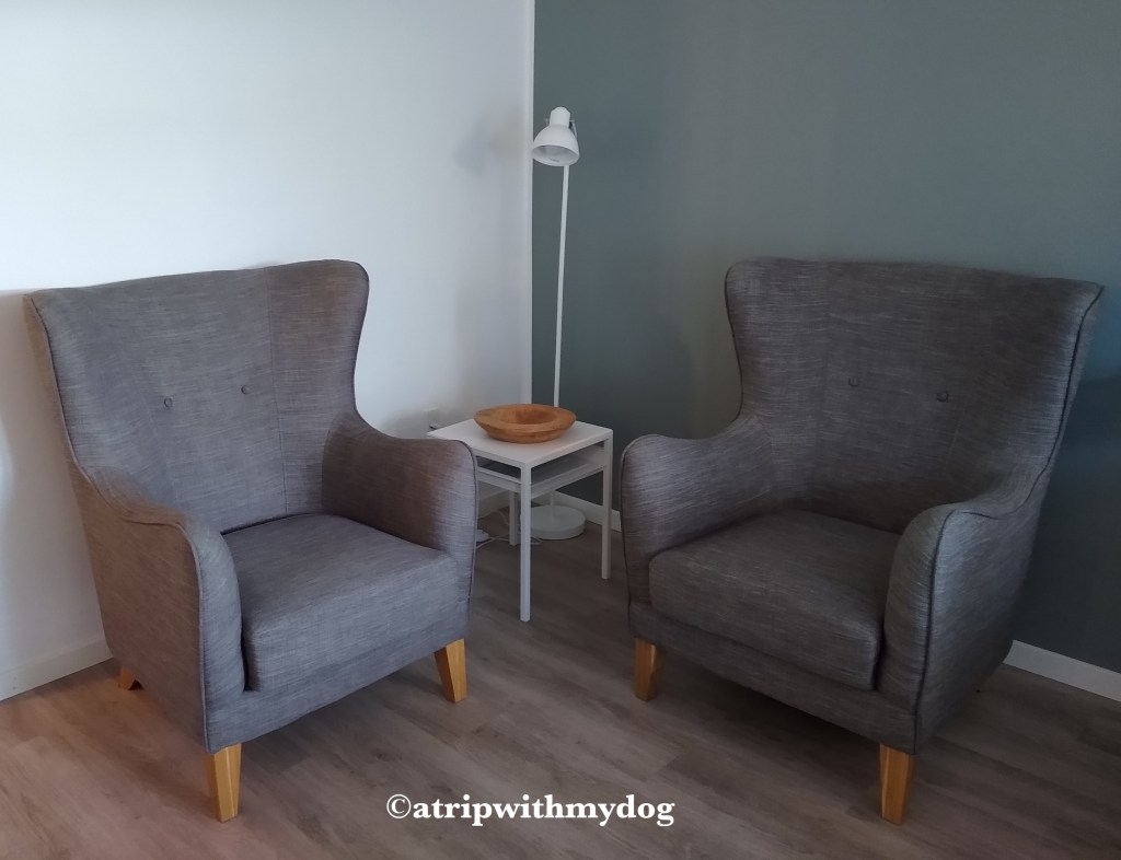 The room also had a little terrace which was perfect with the dog. It was even possible to park right behind the terrace which was extra convenient for bringing the luggage inside. In addition, the hotel had very lovely grounds that could be used by all hotel guests. Rarely have I seen such nice common spaces.